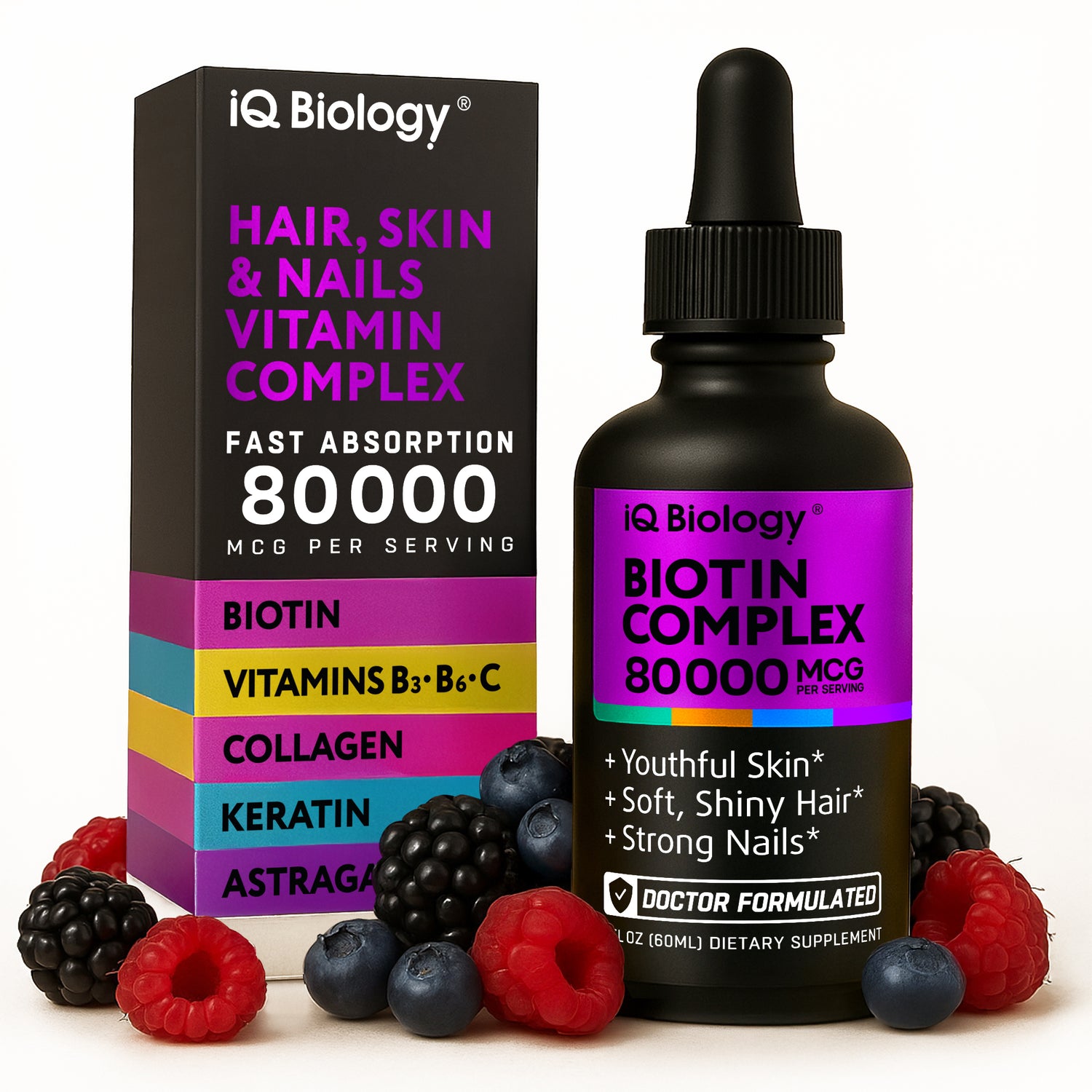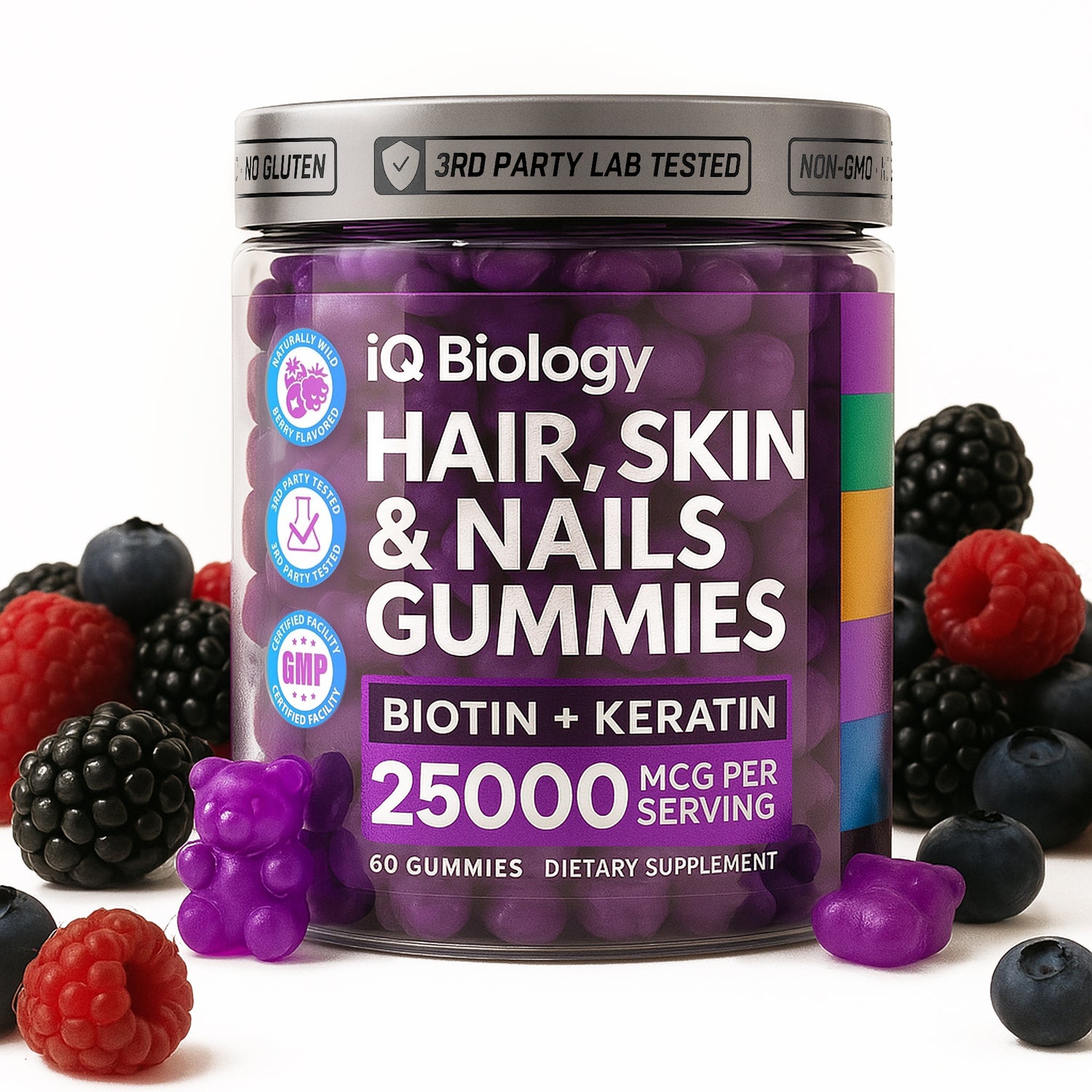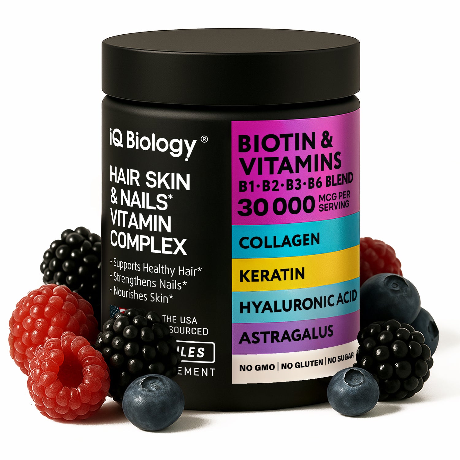 Biotin, collagen, keratin, vitamins A, C, D, E, and B-complex — plus three signature iQ Biology™ blends. A complete beauty formula to nourish healthy hair, skin, and nails.*